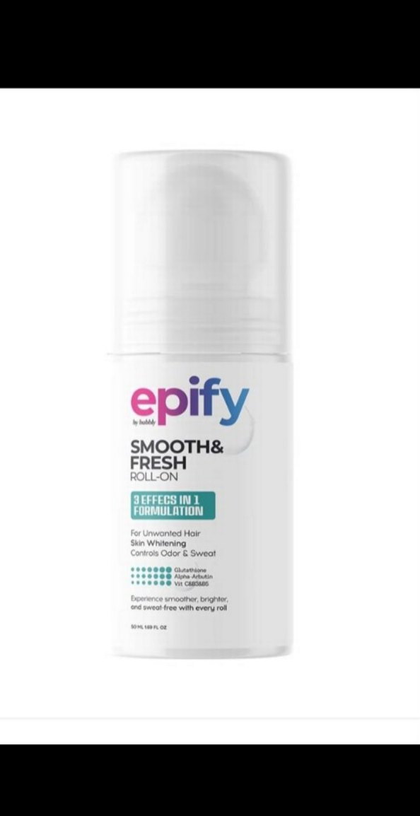Epify Smooth&Fresh Roll-On, istenmeyen tüyleri alır, cildi aydınlatır ve koku kontrolü sağlar. Glutatyon, Alfa Arbutin ve C vitamini içerir.