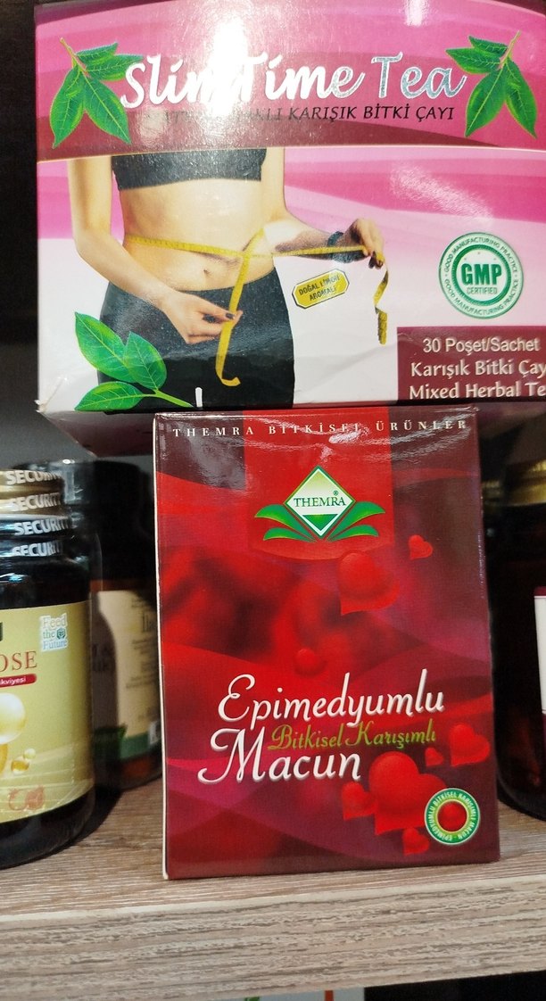 Epimedyumlu, karışık bitkisel içeriklerle hazırlanan macun, doğal destek sağlar. Kırmızı kutuda sunulmaktadır.