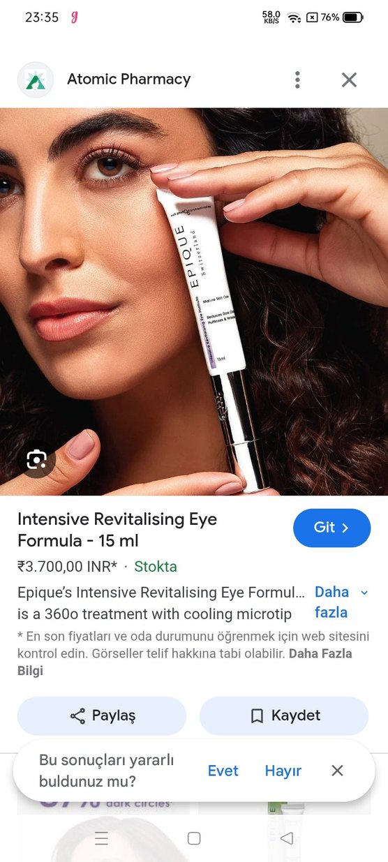 Epique'nin Yoğun Canlandırıcı Göz Formülü, soğutucu mikro uçlu 360 derece uygulama ile göz çevresini yeniler. 15 ml boyutundadır. ️ kullanılmamıştır açılmadı 3700 güncel satış fiyatı