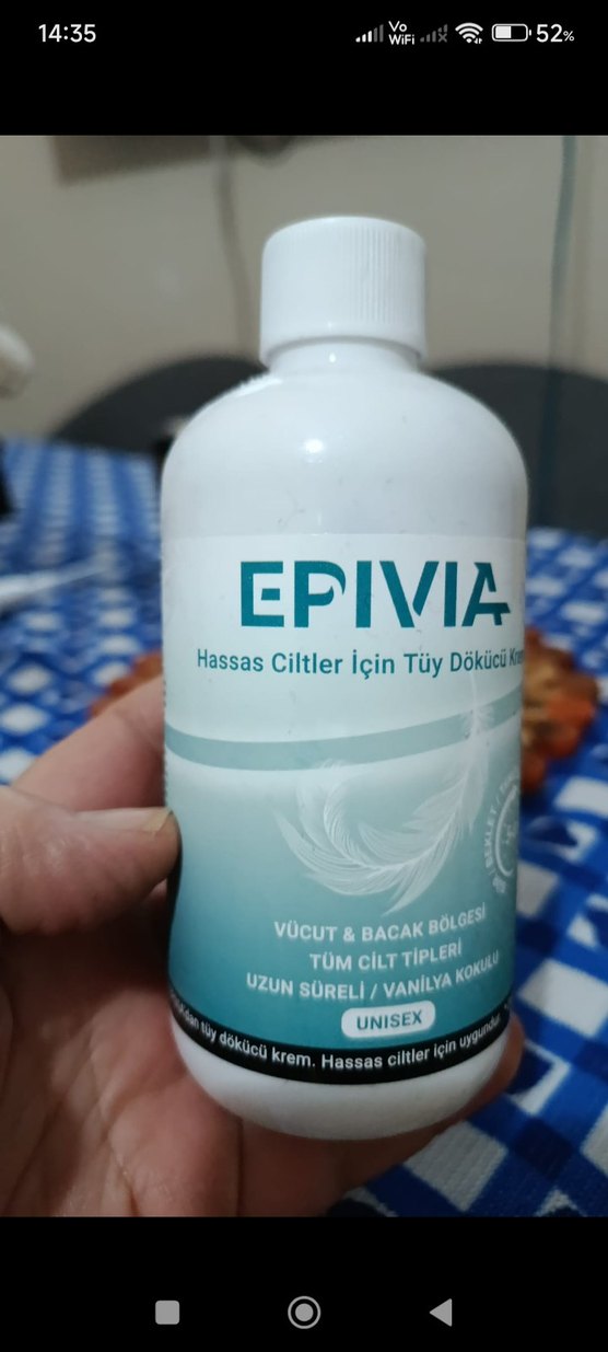 Epivia tüy dökücü krem, hassas ciltler ve tüm cilt tipleri için uygundur. Vücut ve bacak bölgeleri için uzun süreli vanilya kokulu formül. Uniseks kullanıma uygun.