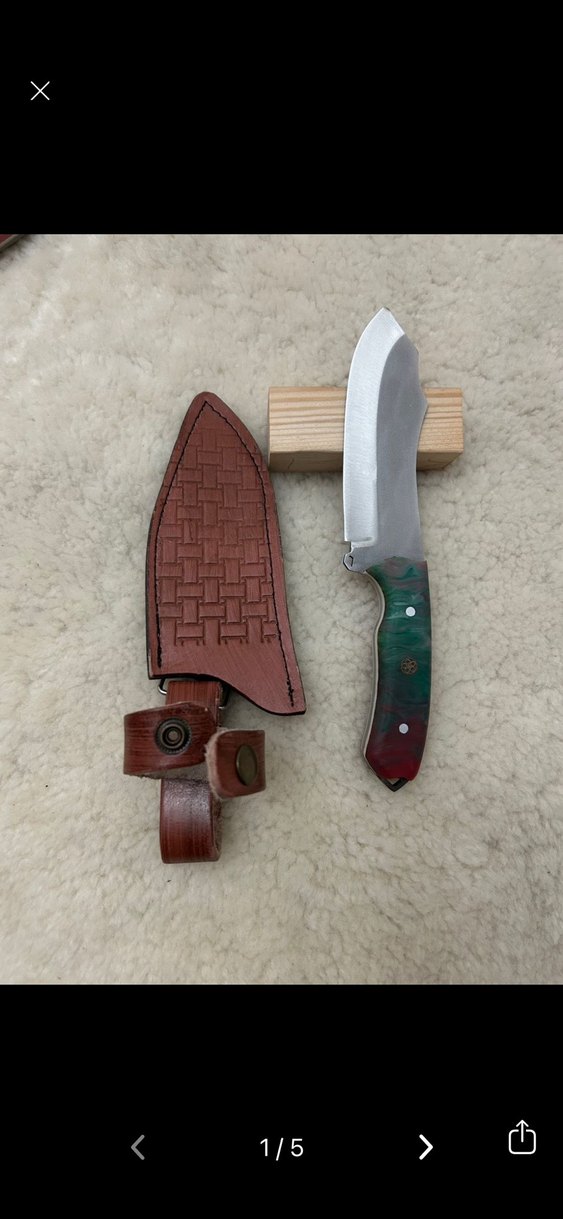 Epoksi, geniş ve sağlam bıçak. Dokulu desenli deri kılıfında güvenli çıtçıt kapama bulunur.