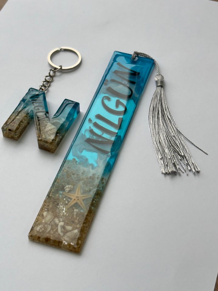 Epoksi Deniz Temalı Kitap Ayracı Ve Anahtarık İkili Set