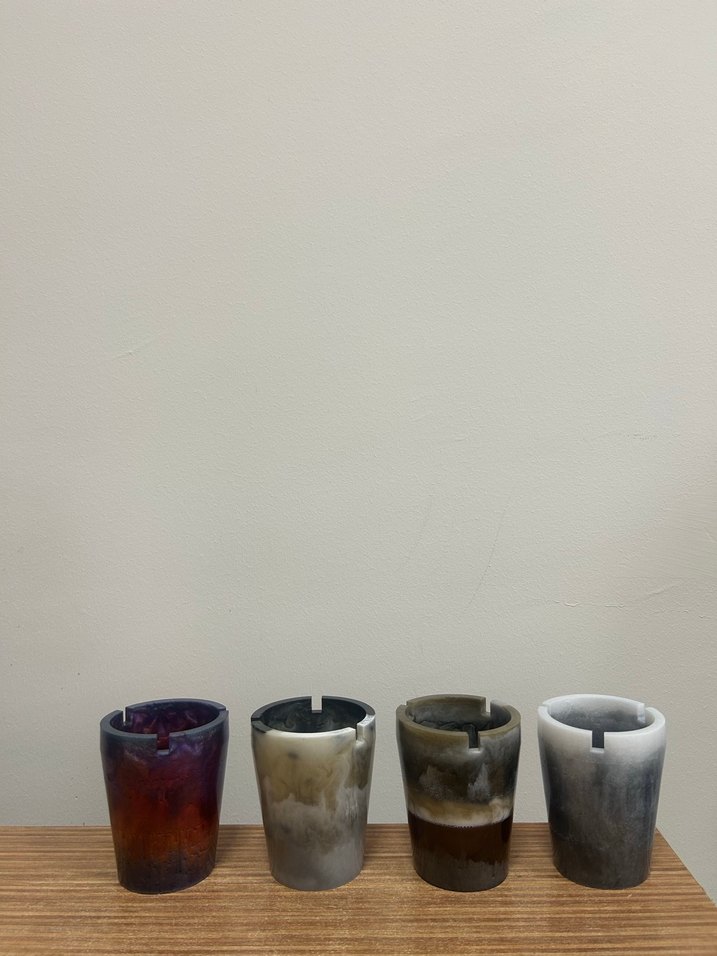 Koyu gri tonlarda, sade ve modern tasarımlı epoksi küllük