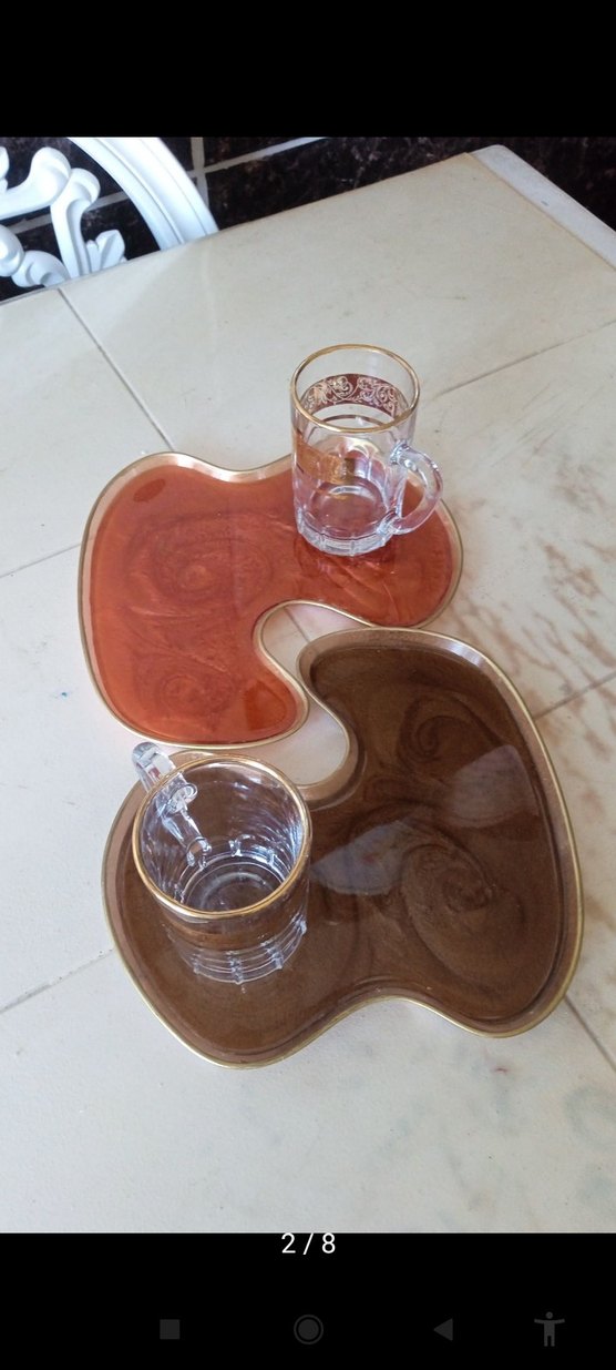 6 lı epoksi sunumluk ve kahve Yanı bardak seti sıfırdır
