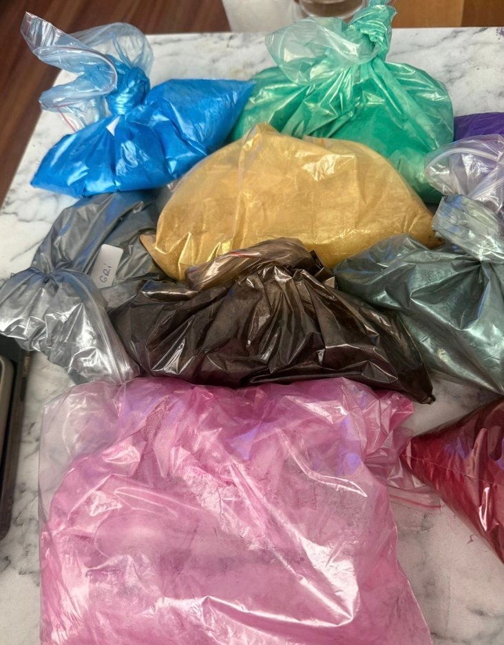 Parlak ve canlı renklere sahip tozlar, şeffaf plastik torbalarda paketlenmiştir. Çok amaçlı kullanıma uygundur.