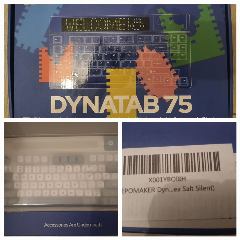 Epomaker Dynatab 75, koyu mavi renkte kompakt mekanik klavyedir. Klavyenin altında aksesuarlar bulunmaktadır. Kutuda model adı ve hoş geldiniz mesajı yer almaktadır.