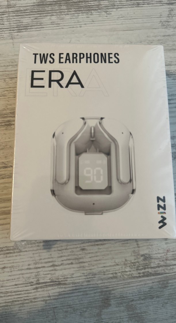 Bej renkli Era TWS kablosuz kulaklık, dijital pil göstergeli kompakt şarj kutusuna sahiptir. Rahat kullanım sunar.