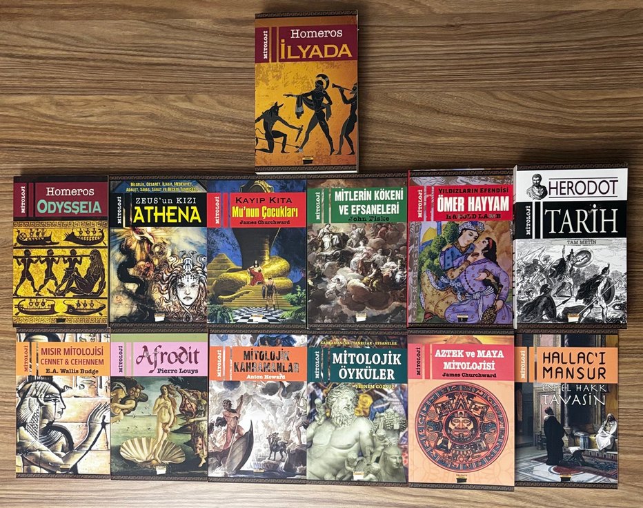 Erasmus Yayınları’nın koleksiyon değeri yüksek 13 kitaplık dev Mitoloji ve Tarih setidir. Kütüphaneniz için hem görsel hem içerik olarak eşsiz bir kaynak niteliğindedir. DURUM: Kitapların iç sayfaları pırıl pırıl, hiç okunmamış ve sıfır ayarındadır. Yayınevinin baskı tekniği gereği bazı kapak yüzeylerinde yüzeysel doku farklılıkları (pul pul görünüm) mevcuttur(son koyduğum resimde ki kitaplar da mevcut); okumaya veya sağlamlığa asla engel değildir. SET LİSTESİ: 1-Homeros: İlyada 2-Homeros: Odysseia 3-Herodot: Tarih 4-Zeus’un Kızı Athena 5-Afrodit 6-Mısır Mitolojisi 7-Aztek ve Maya Mitolojisi 8-Mitolojik Kahramanlar 9-Mitolojik Öyküler 10-Mitlerin Kökeni 11-Kayıp Kıta Mu 12-Ömer Hayyam: Yıldızların Efendisi 13-Hallacı Mansur: El Hakk'ın Tavasi FIRSAT: Herodot ve Homeros gibi nadide eserleri içeren bu seri, kapak detayları nedeniyle kitap başı sadece 123 TL’ye set olarak listelenmiştir. Kargo bedava avantajıyla kaçırılmayacak bir koleksiyondur. Tekli satış yoktur. Keyifli okumalar