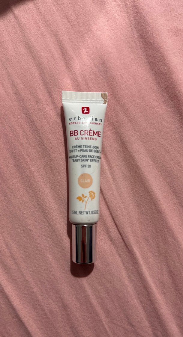 Erborian BB Crème au Ginseng, cilt tonunu eşitleyen, nemlendiren ve “bebek gibi” pürüzsüz bir görünüm sağlayan çok amaçlı bir BB kremdir. Formülündeki Ginseng özü, cildi canlandırır, enerji verir ve sıkılaştırmaya yardımcı olur. Etkileri: • Hafif kapatıcılık sağlar (doğal bitişli). • Cildi gün boyu nemli tutar. • Cilt tonunu eşitler, gözenek görünümünü yumuşatır. • “Baby skin effect” yani bebeksi, pürüzsüz bir cilt sağlar. • SPF 20 ile günlük güneş koruması sunar. Renk tonu: Clair (açık ton)