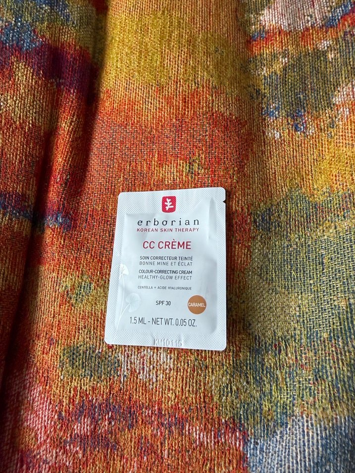Erborian Parlak Camel tonunda SPF30 korumalı CC Krem, renk düzeltici ve ışıltılı bitiş sağlar. 1.5 ml örnek ürün, hafif kapatıcılık ve nemlendirme sunar.✨