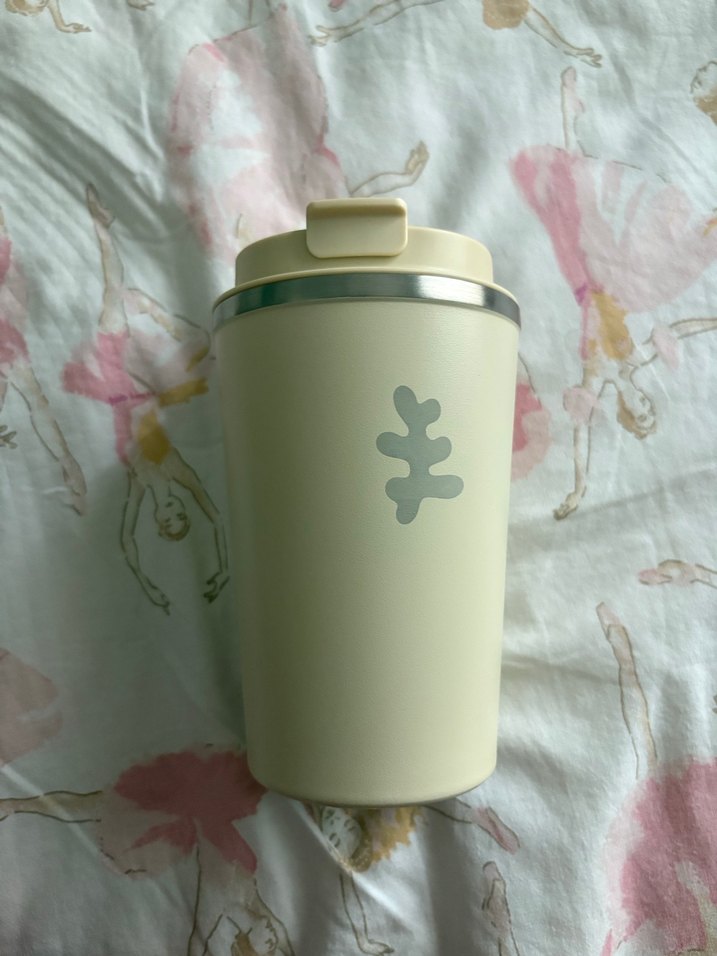 Pastel beyaz renkte tasarlanmış termos şişe. Güvenli açılır kapak ve yuvarlak tasarıma sahip, içecekleri sıcak ya da soğuk tutar.