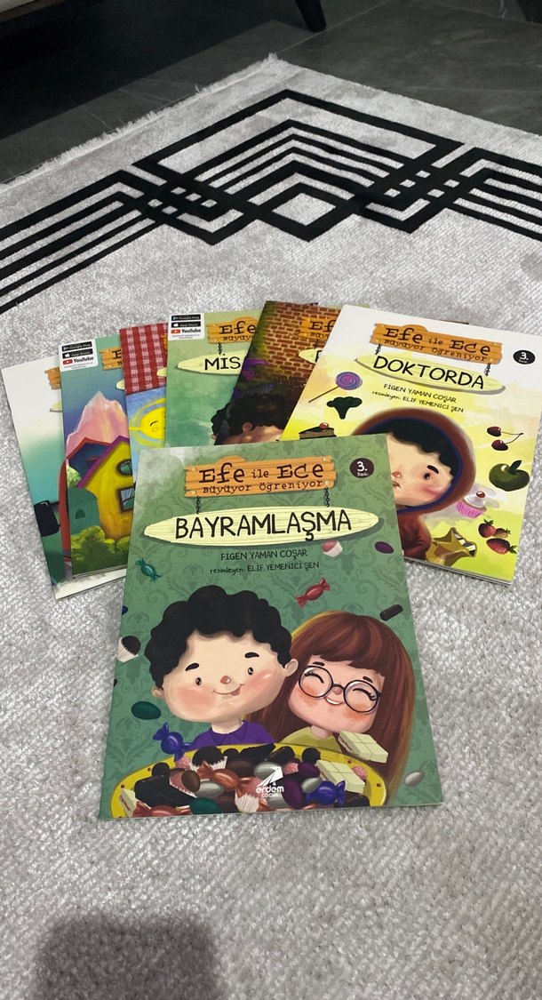 Efe ile Ece karakterlerinin yer aldığı, Bayramlaşma, Doktorda ve Mis gibi başlıkları içeren çocuk kitapları seti.