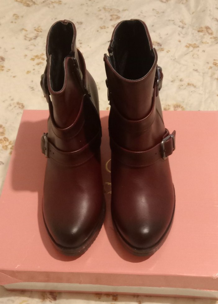 Bordo renkli deri kadın botu, tokalı ve blok topuklu. Günlük kullanıma uygun, rahat ve tarz bir model. yeni sifir hakiki deridir. erdogan markadir