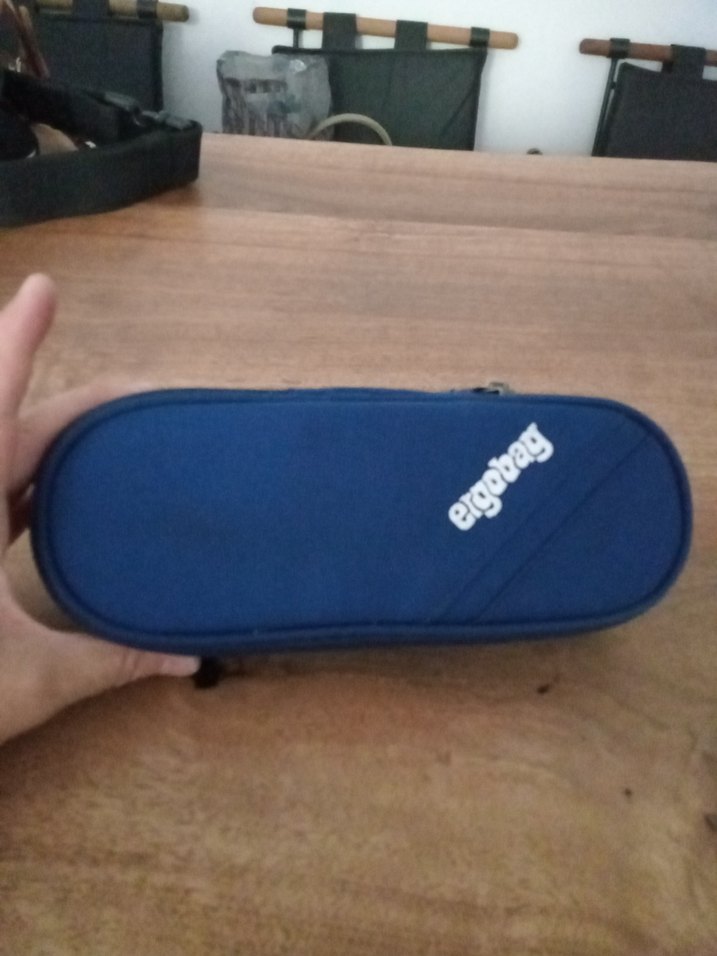 Lacivert Ergobag kalem çantası, sade tasarımlı ve fermuarlı kapaklıdır. Okul eşyaları için uygundur.
