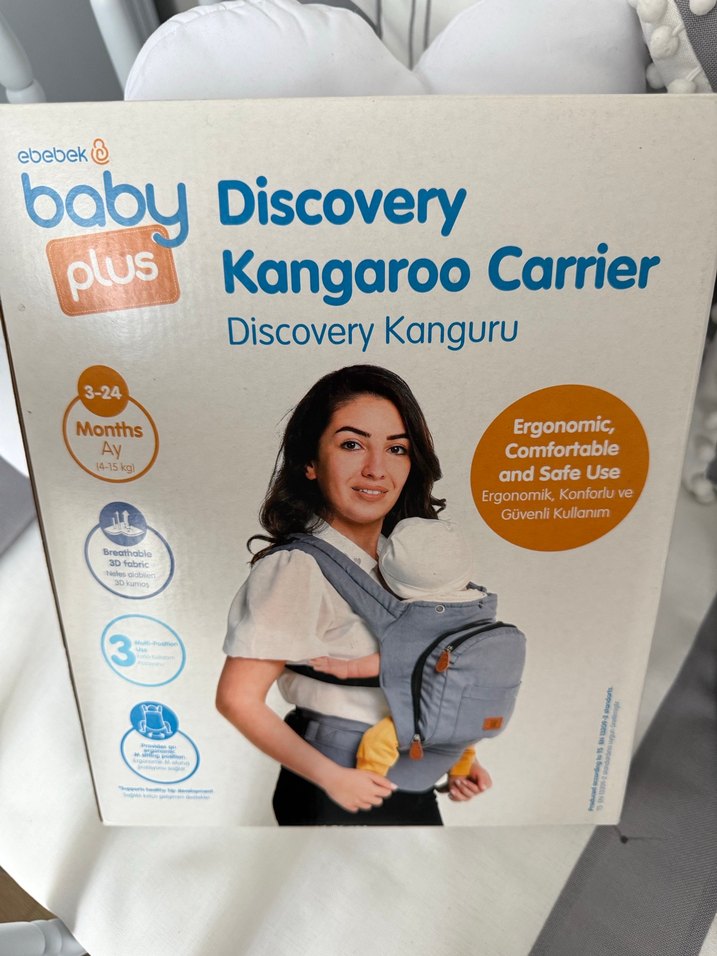 3-24 ay arası bebekler için ergonomik, konforlu ve güvenli taşıma sağlayan Discovery Plus kanguru taşıyıcı. 15 kg'a kadar destek sunar ve ayarlanabilir yapıya sahiptir.