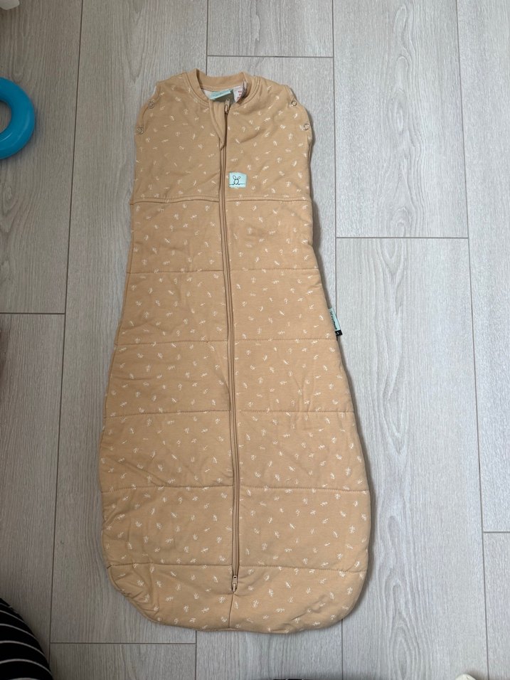 Bej renkli bebek uyku tulumu, yumuşak ve sıcak kumaşla rahat uyku sağlar. Önden fermuarlı ve sade tasarımlıdır. 6-12 ay