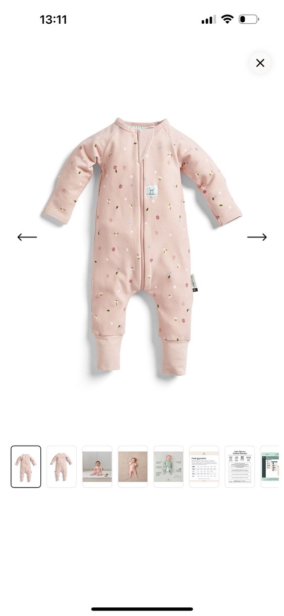 Pastel pembe renkli, ön fermuarlı kız bebek tulumu, yumuşak kumaş ve hafif desenlerle rahat kullanım sağlar. Ergopouch marka 1.0 tog 3-6 ay uyumlu