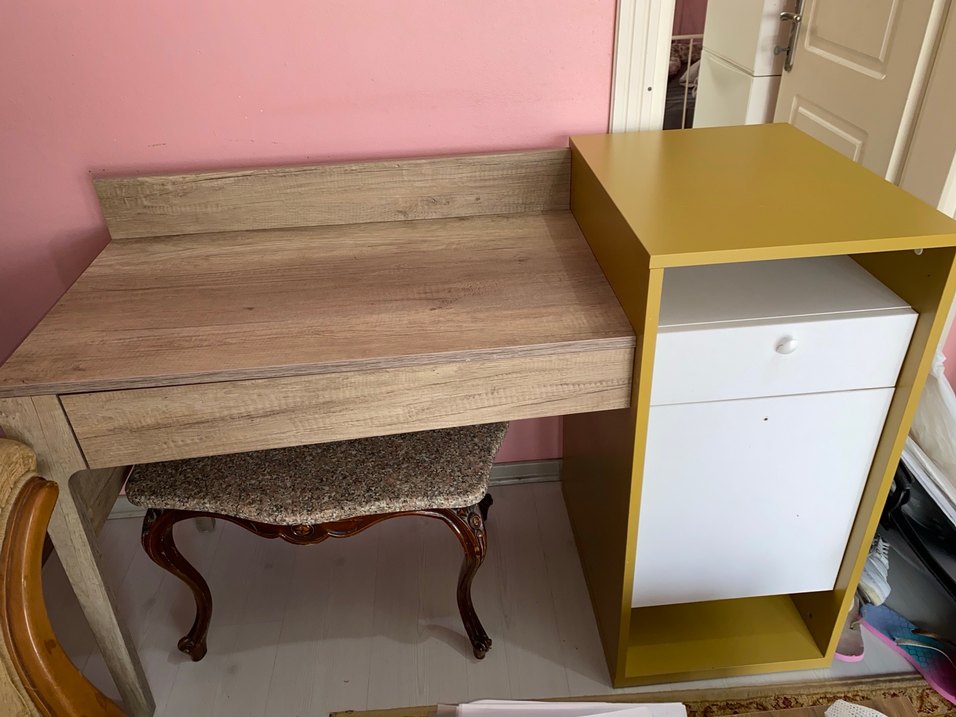 Ergül mobilya çalışma masası sağlamdır bir kulpu yoktur takım halinde de satılabilir pazarlık yapılır