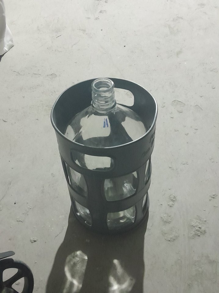 Şeffaf gövdeye sahip, siyah plastik korumalı cam su damacana erikli dayanıklı ve kolay tutuş sağlar.