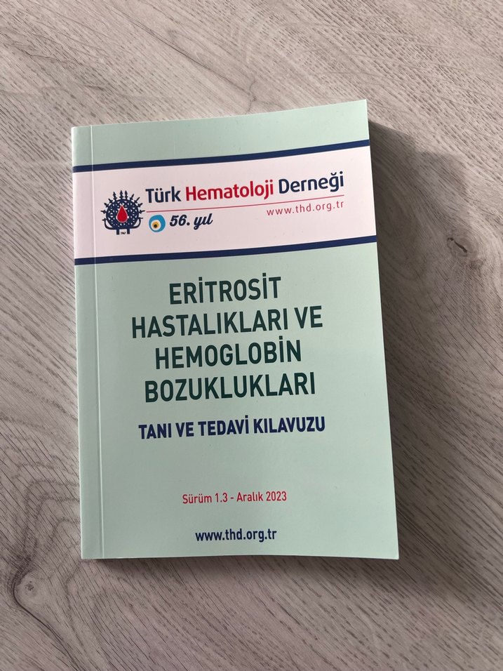 Türk Hematoloji Derneği tarafından Aralık 2023'te yayımlanan, eritrosit hastalıkları ve hemoglobin bozukluklarının tanı ve tedavi kılavuzunu içeren kitap.