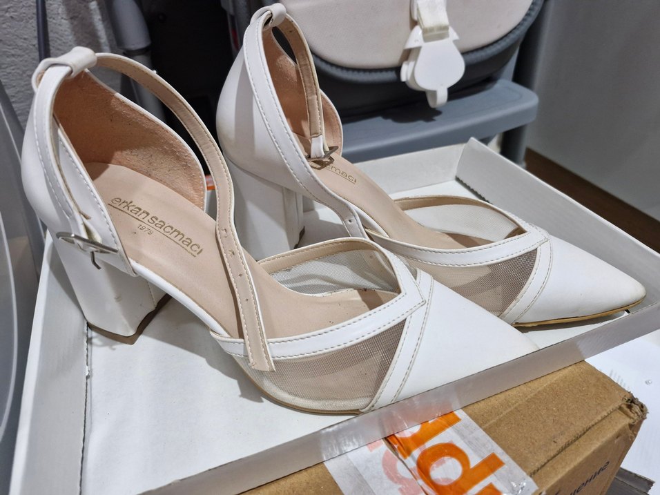 Erkan saçmacı kadın fileli beyaz topuklu ayakkabı