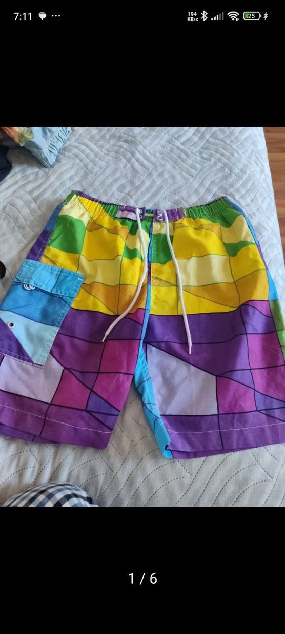 Ayarlanabilir bağcıklı, çok renkli geometrik desenli erkek mayo şortu. ürünün bir sıkıntısı defosu yoktur - içliklidir ve ceplidir ! ürün yaşı 14 yaştır