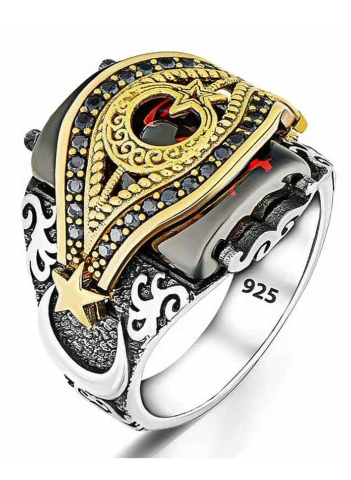 Erkekler için vintage tarzda, koyu altın kaplama ve siyah detaylı 925 ayar gümüş yüzük. Sade ve özgün tasarım ⭐