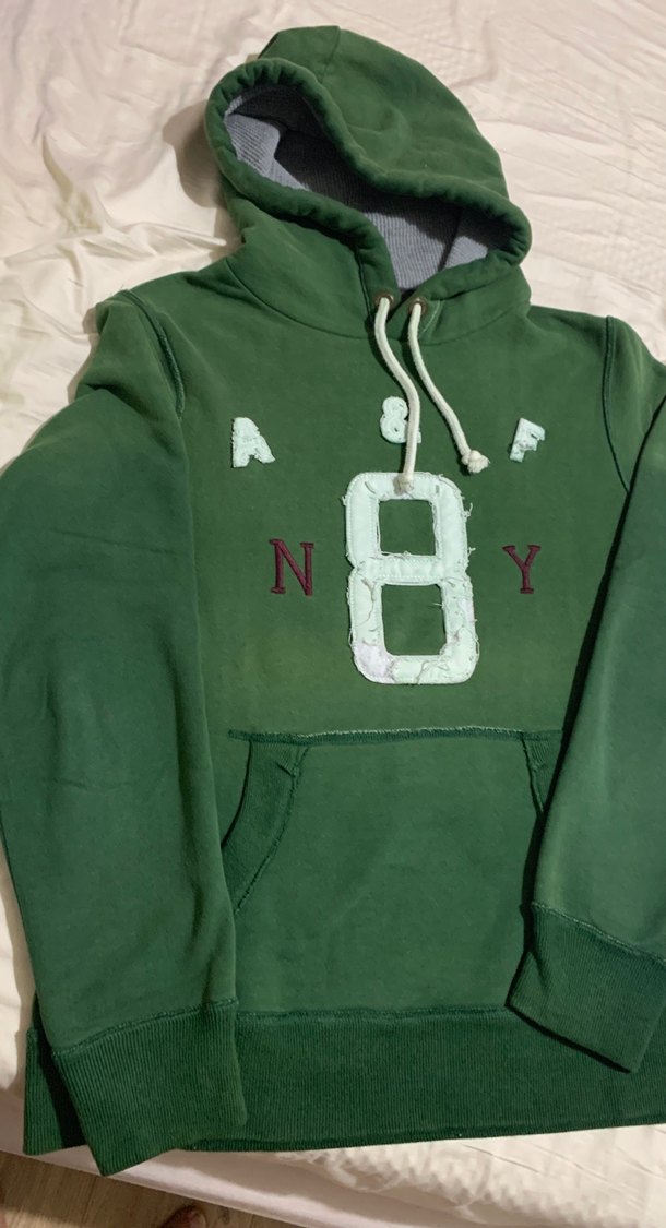 Bu koyu yeşil erkek sweatshirtü, uzun kollu ve yuvarlak yakalı, dar kesimlidir. Üzerinde harf ve 8 rakamı baskısı ile düğmeli detay vardır. Yumuşak kürk dokulu kumaştan yapılmıştır, spor ve günlük tarzlara uygundur orijinal Abercrombie Amerika’dan ♀️