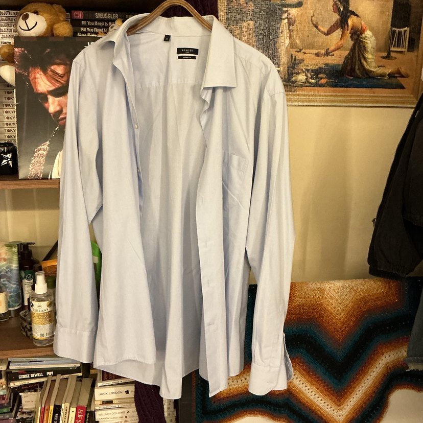 Erkekler için açık mavi pamuklugömlek, yakalı ve düğmeli ön tasarıma sahip. Uzun kollu ve normal kesim, ofis ortamı için uygun. Trendy casual tarzda iş giyimi için ideal.