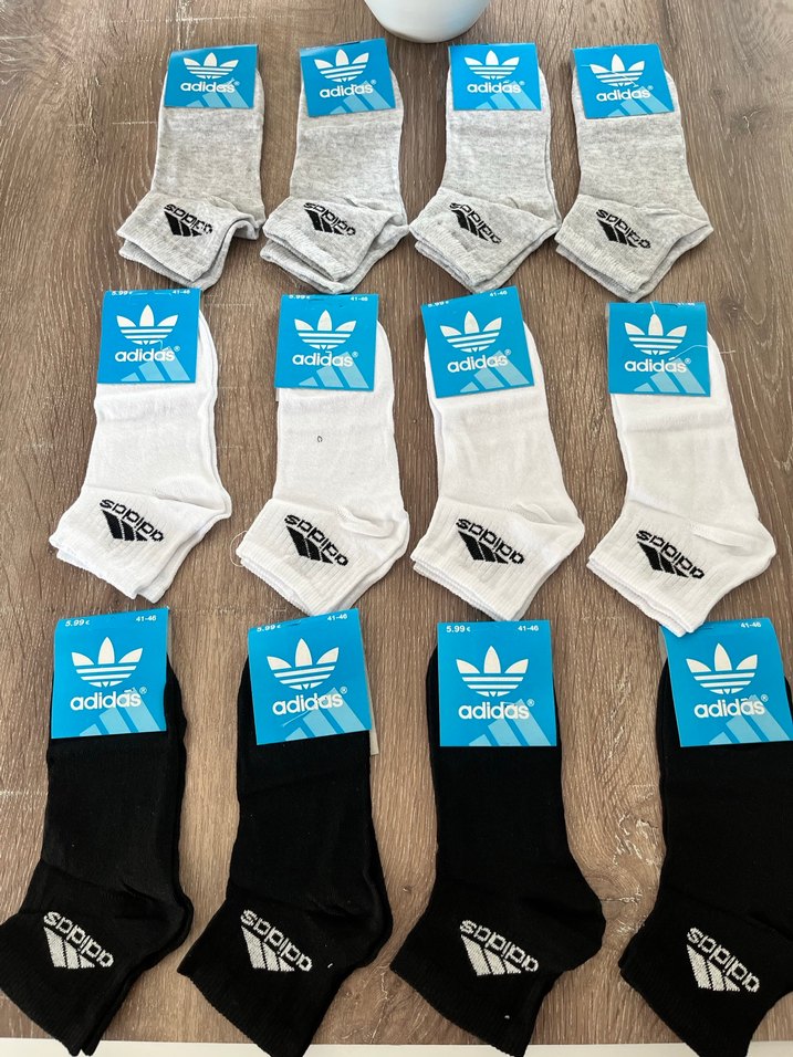 Adidas markalı, gri, siyah ve beyaz renklerde baskılı, erkekler için mini ve dar kesim çoraplar. Numara aralığı 40-44 arası uyumludur