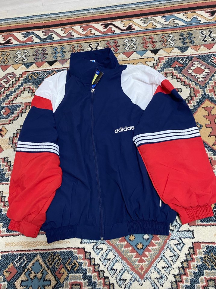 Erkekler için Adidas renkli, fermuarlı, yüksek yakalı ve bol kesim eşofman takımı Yumuşak ve sıcak kumaştan üretilmiştir. Mavi, kırmızı ve beyaz renkler içerir. İçi astarlı L beden orijinal ürün değildir