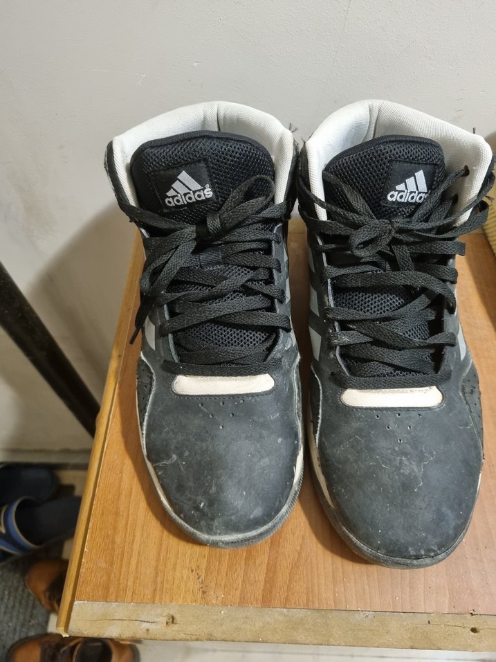 Adidas siyah beyaz renkli, bağcıklı ve desen içermeyen ayakkabısıdır resimde gördünüz gibi içinin yan tarafı yırtık bu fiyat en ucuza bırakıyorum defosu olduğu için normalde sıfır pahalı biliyorsunuz yırtık olmazsa 500 600 koyardım