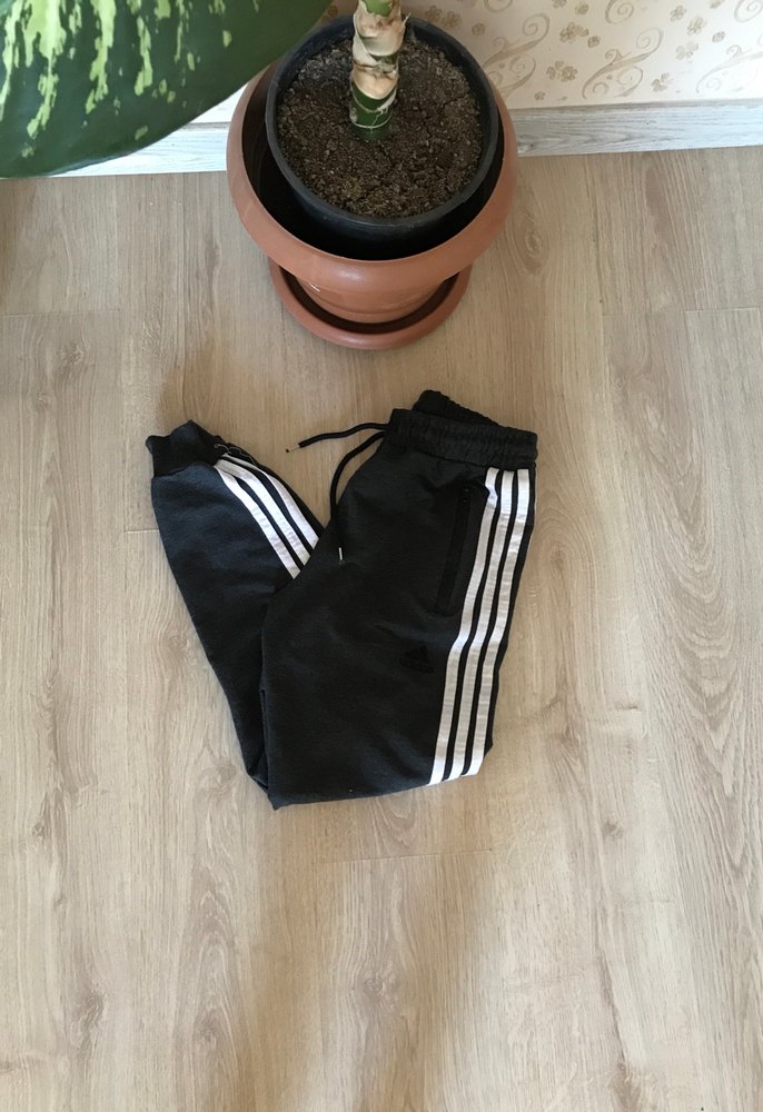 Siyah pamuklu, bol kesim, normal boyda, beyaz yan şeritli ve cırt cırt detaylı eşofman altı. Spor ve günlük kullanıma uygundur. Uzunluğu 88 cm #adidaserkekeşofman #eşofman #erkekeşofman