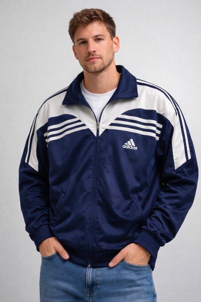 Erkek adidas vintage Lacivert Fermuarlı Spor Ceket