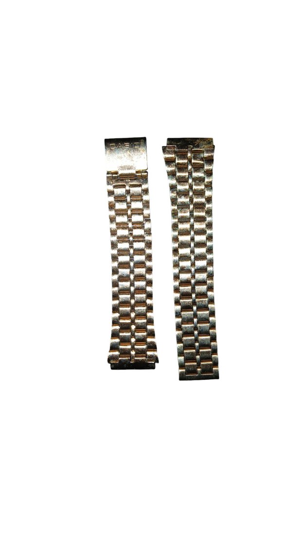 Erkekler için altın renkli metal saat kayışı, vintage ve parlak görünümlü. Klasik bağlantı tasarımıyla eski tarz saatlere uygundur. ⌚ürün kullanıldı,sıfır ürün beklemeyin lütfen....