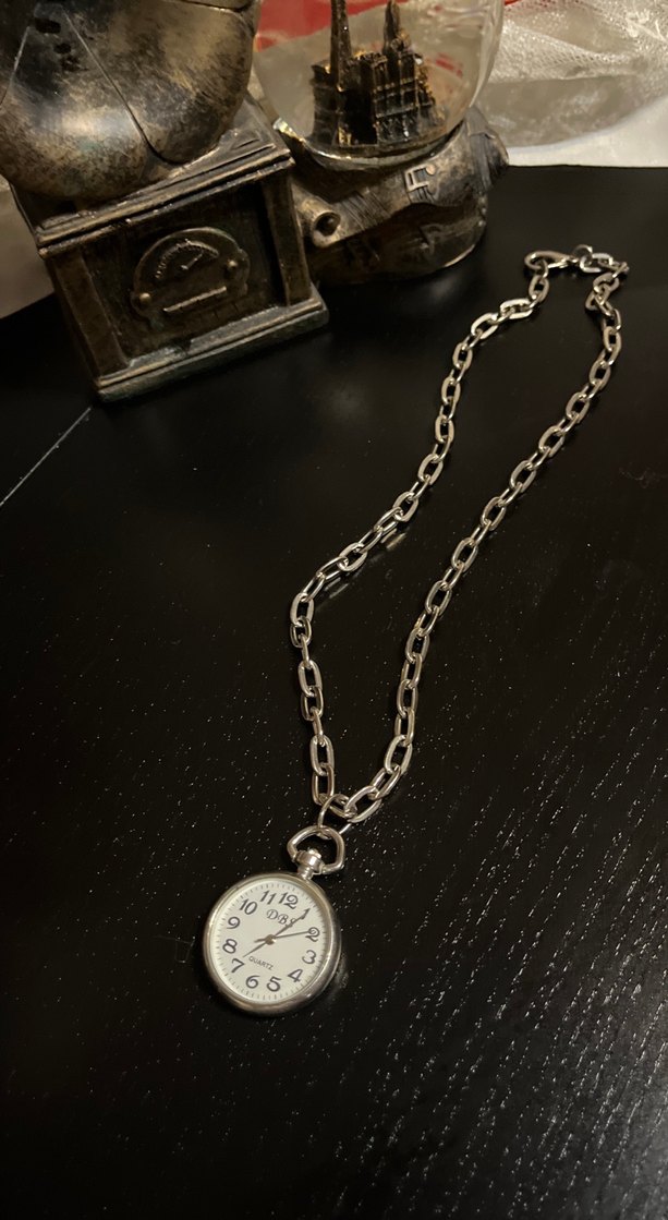 Parlak altın renk zincir kolye, klasik cep saati kolye ucu ile vintage ve gotik tarzı birleştirir ⌚.