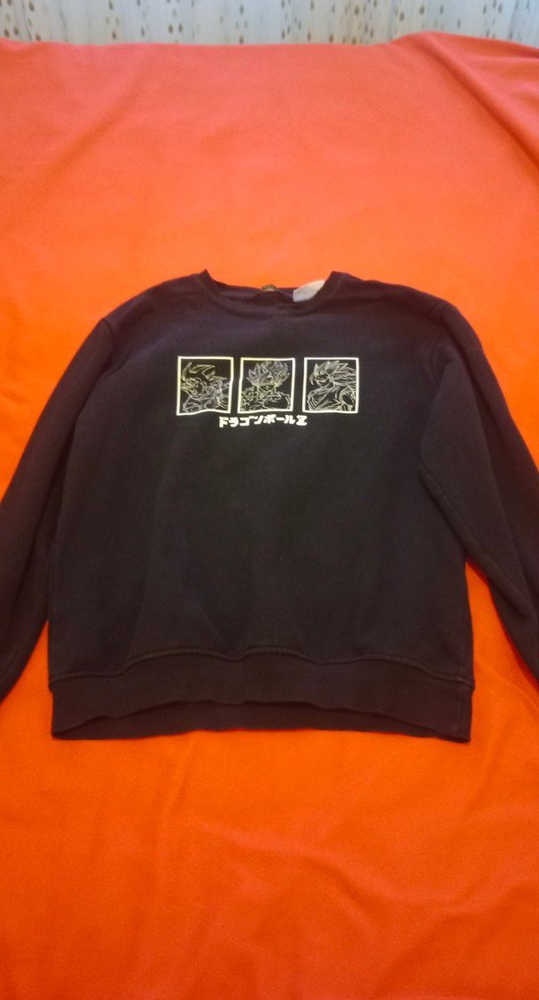 Sırtında Dragon Ball Z baskısı olan siyah uzun kollu sweatshirt. Yuvarlak yaka. Yumuşak ve sıcak kumaştan, günlük kullanım için uygundur.