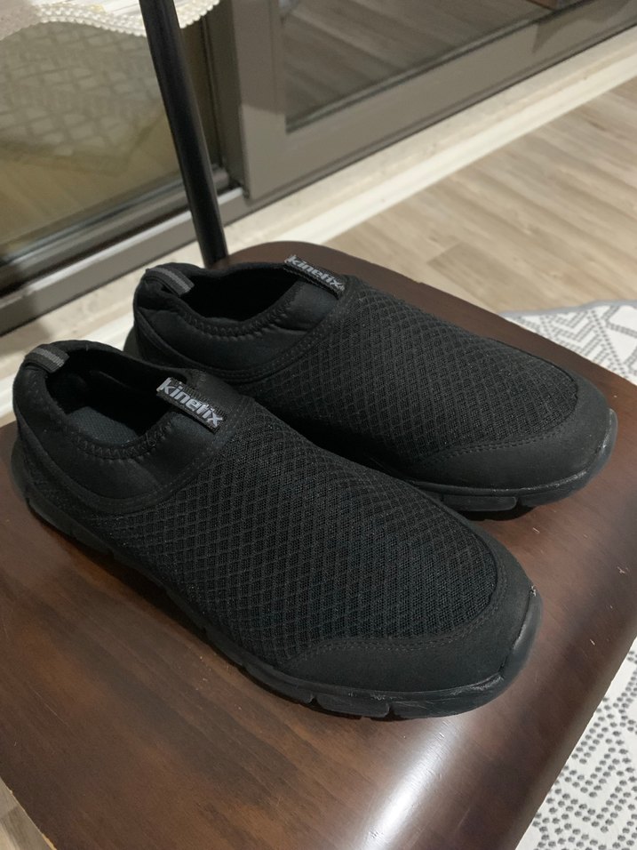 Siyah renkli, erkek antrenman ve yürüyüş ayakkabısı, rahat kauçuk tabanlı fitness için uygundur. Bir kez giyildi. Hiçbir kusuru yoktur.