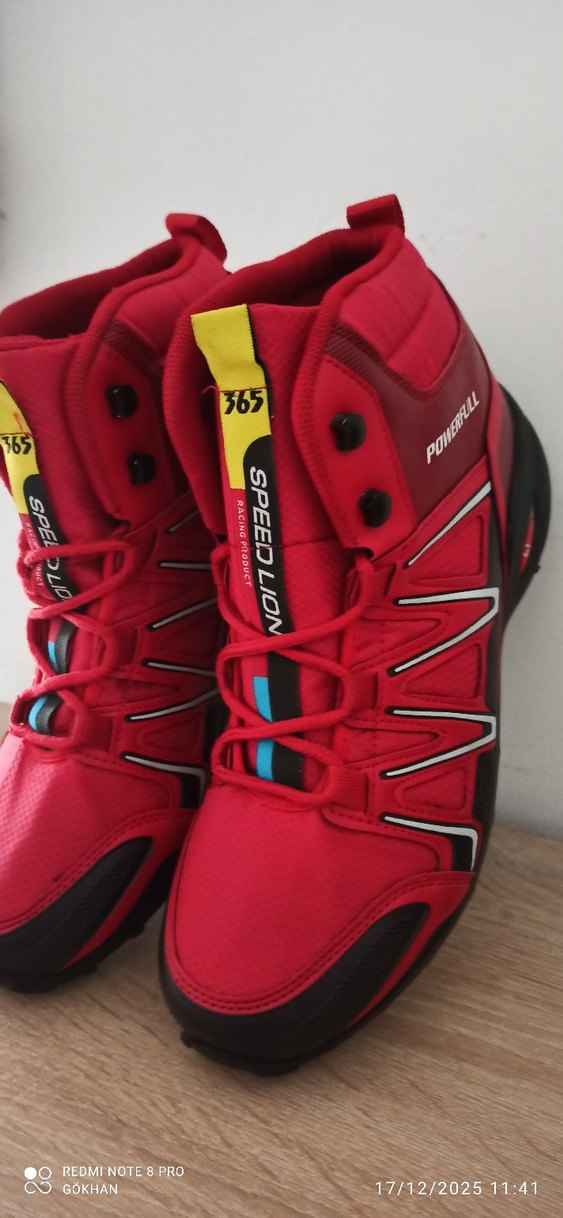 Kırmızı renkli, baskılı ve Velcro bağcıklı ayakkabısı. Kauçuk tabanlı, sokak modası ve spor tarzına uygun.