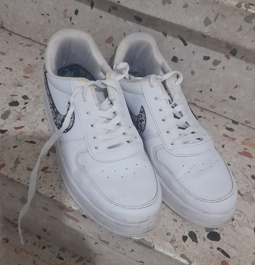 Gri detaylı, beyaz bağcıklı erkek spor ayakkabısı. Kauçuk malzemeden, blok topuklu, günlük kullanım ve sokak stili için uygundur.