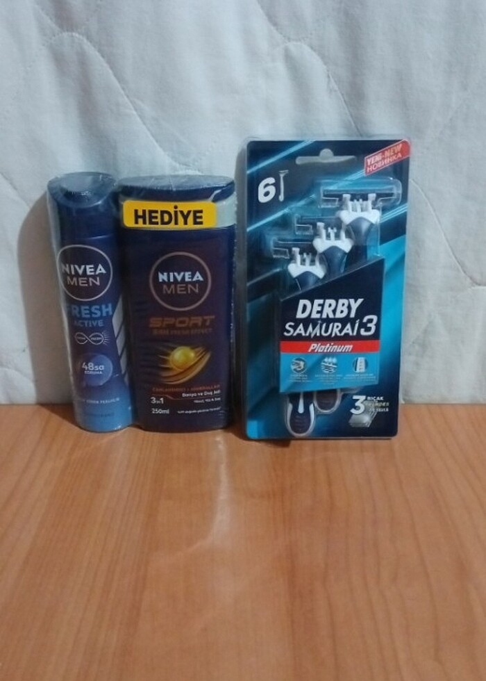 ERKEK KİŞİSEL BAKIM PAKETİ NİVEA DUŞ JELİ SPORT SERİSİ YÜZ SAÇ VE VÜCUT İÇİN 250ml NİVEA DEODORANT 159ml FRESH AKTİVE SERİSİ 48 SAATE YAKIN KORUMA DERBY TIRAŞ BIÇAĞI PAKETİ 3 BIÇAKLI 6 ADET SON ÜRÜN SÜPER FIRSAT BİTTİ BİTER BİR DAHA BU FİYATA GELMEZ İLAN YANI EKTRA İNDİRİMLİ ÜRÜNLERİME BAKMAYI UNUTMAYIN FIRSATLARI KAÇIRMAYIN AYRICA ÖDEDİĞİN GÜVENCE BEDELİNE DEĞSİN İLANA EKLEYECEĞİNİZ HER DİĞER İLAN 4'TL İNDİRİMLİ GELSİN ALT LİMİT YOK 5 İLAN DAHA EKLE 20₺ İNDİRİMLİ OLSUN 10 İLAN DAHA EKLE 40₺ İNDİRİM OLSUN DAHA UCUZU YOK DAHA AVANTAJLISI YOK