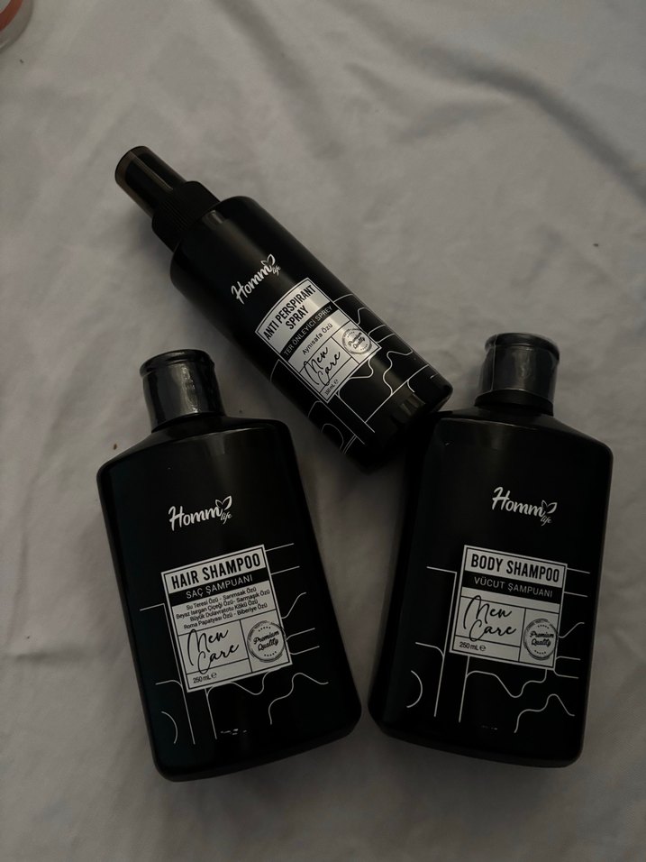 Honani erkek bakım seti, saç ve vücut şampuanını şık siyah şişelerde sunar. Saç ve vücut için etkili temizlik sağlar.