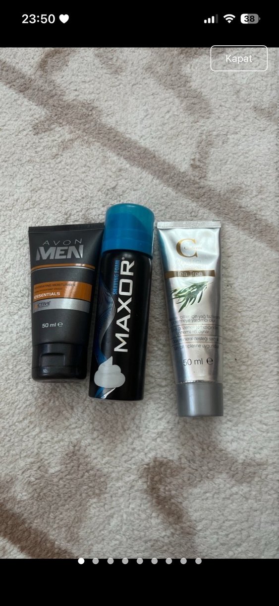 Avon Men Essentials krem, Maxor tıraş köpüğü ve nemlendirici krem içeren 50 ml'lik erkek bakım seti.