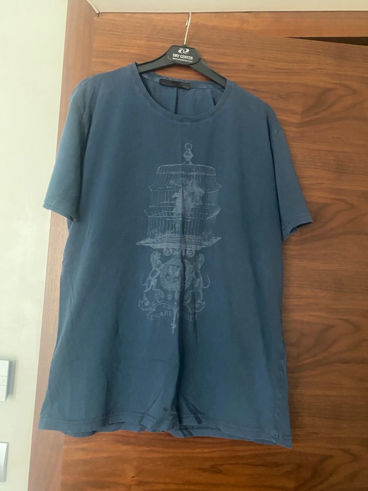 Lacivert pamuk kumaştan, kısa kollu, yuvarlak yaka, baskılı erkek tişörtü. Rahat kesimiyle günlük kullanıma uygundur.
