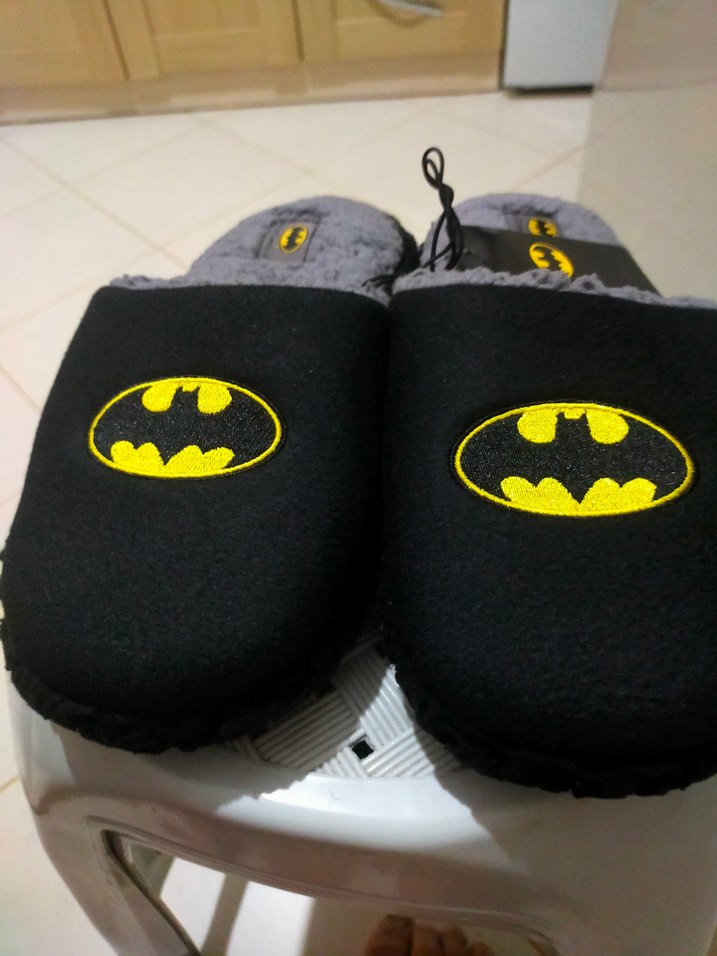 Koyu gri renkli, Batman baskılı, cırt cırtlı erkek çocuk sıcak terlik. İç kısmı yumuşak ve rahat.