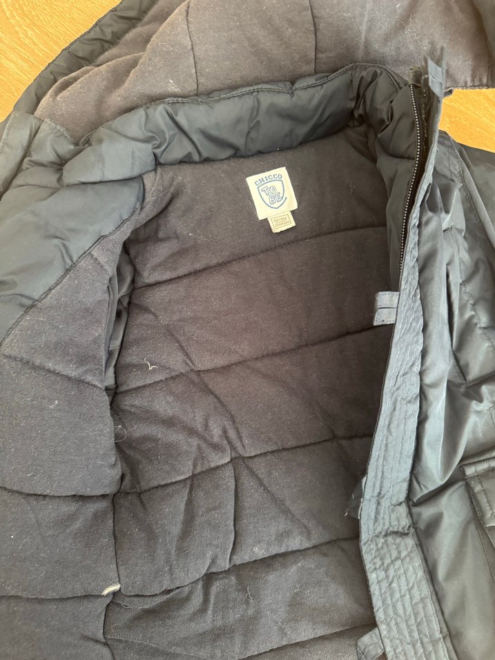 Lacivert 18 aylık mont resimde görüldüğü gibi kapşonun bağlantı yerinde ve fermuarın başlangıcında sökülme var dikilip kullanılabilir, kol lastiğinde de pamuklanma var. Bunun dışında taş gibi soğuğa karşı koruyucu şık bir mont