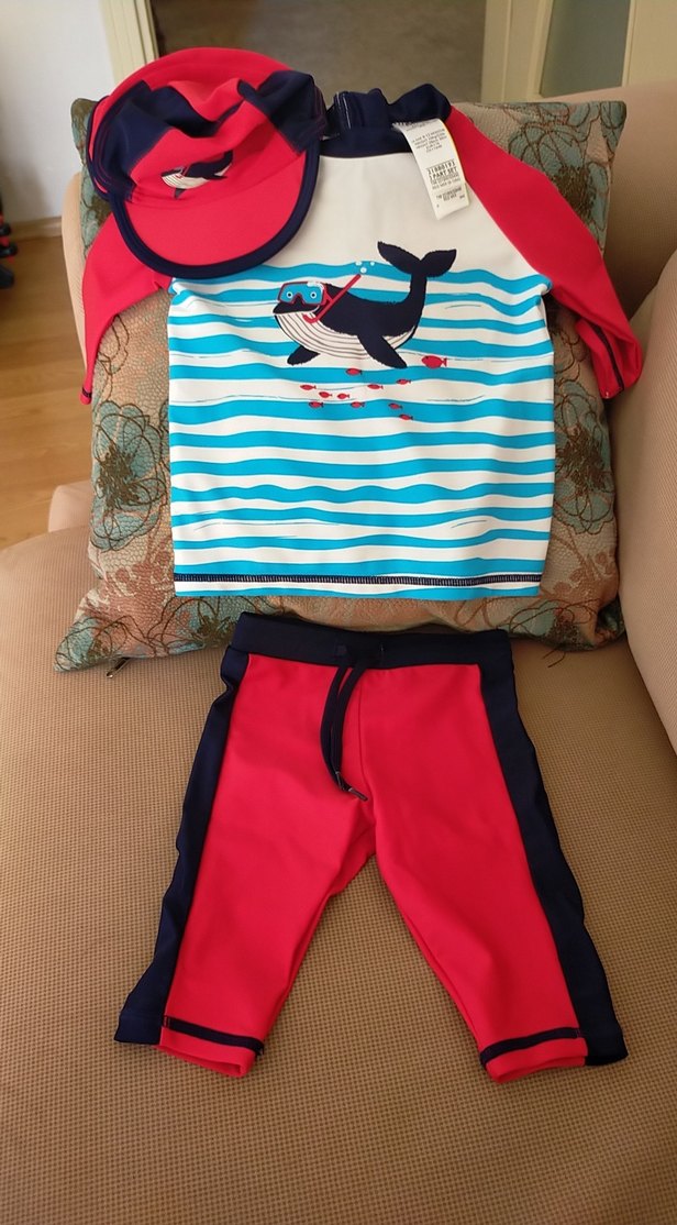 Erkek bebek icin M&S marka koruyucu mayo. ingiltereden hediye gelmisti. 9-12 ay icin uygun ama biz 7 ay civarında 1 kez havuzda kullandık.