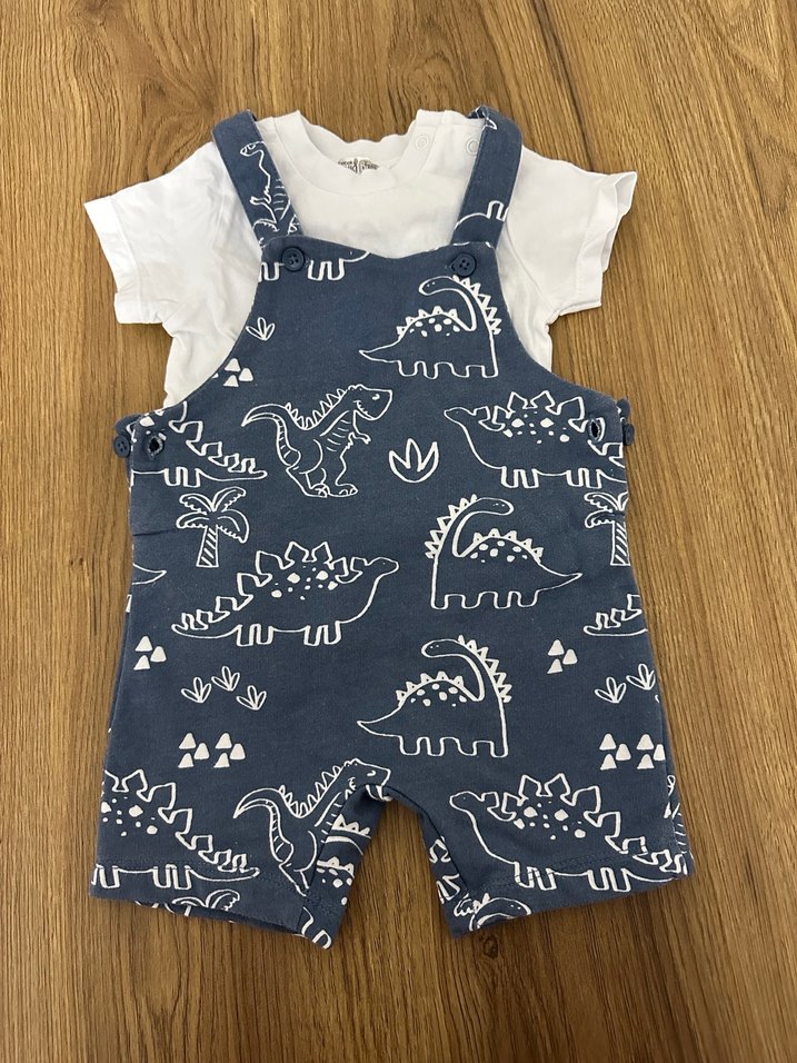 Ürün sıfırdır. Hiç giyilmedi. Sadece etiketini kestiğim için iade edemedim. Erkek çocuklar için bol kesim kot salopet, kısa kollu ve tokalıdır. Mavi renkli ve gri dinozor baskılıdır, sokak stili için uygun.