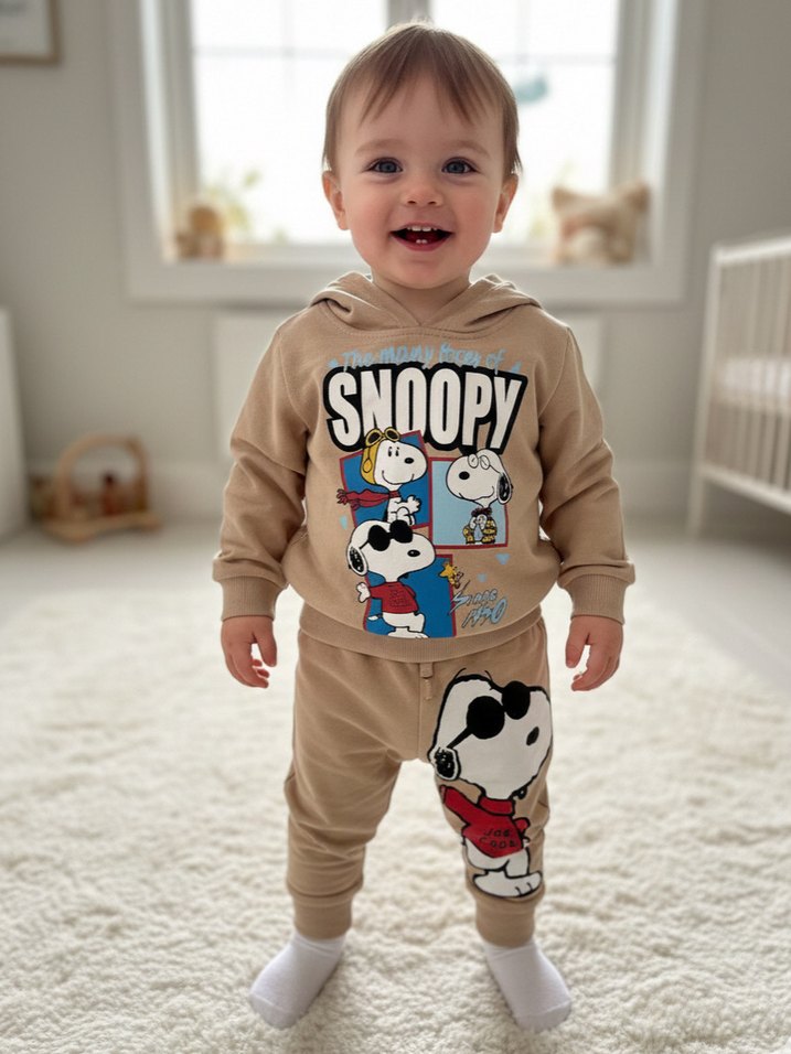Erkek bebek bej Snoopy Baskılı Eşofman Takımı