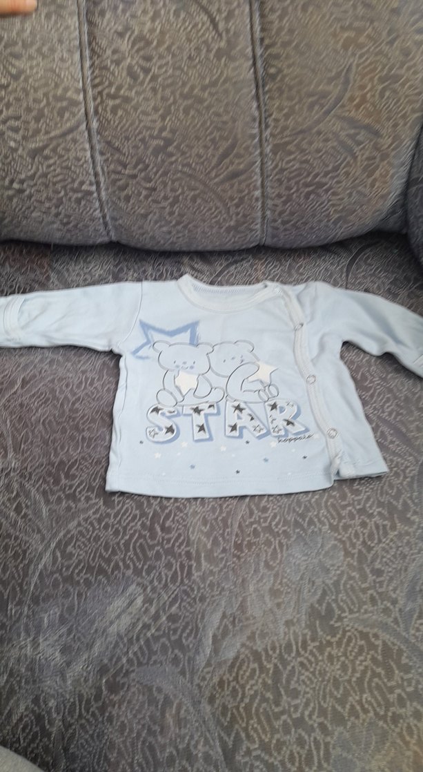 Erkek çocuk için uzun kollu, yuvarlak yaka ve bol kesim sweatshirt. Yumuşak ve sıcak kumaştan, butonlu ve ayı ile yıldız baskılı. Gri-mavi tonlarında, rahat sokak stili için uygun.